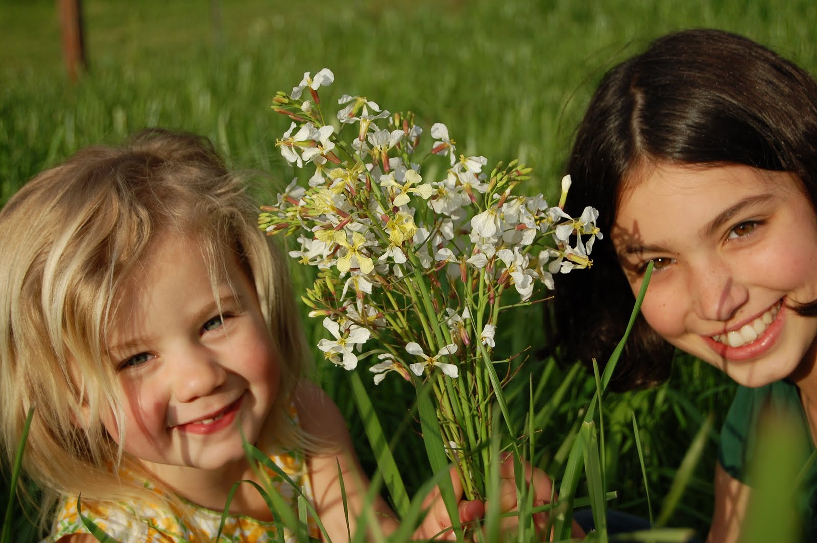 The sun was in a perfect spot for a photo-op so I picked some wild flowers and begged the girls for pictures. They were pretty good sports about the whole thing.